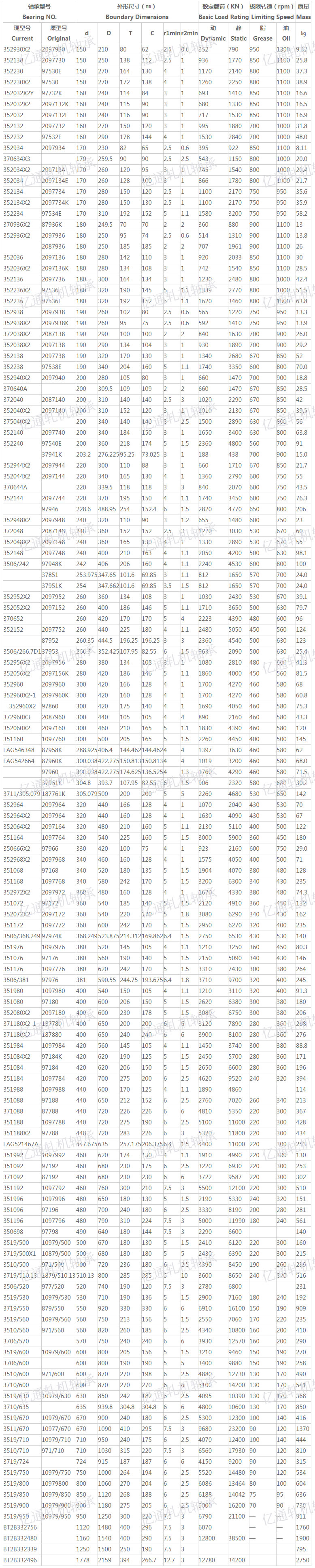 雙列圓錐滾子軸承軸承型號(hào)Bearing NO.現(xiàn)型號(hào)Current352930X2352130...