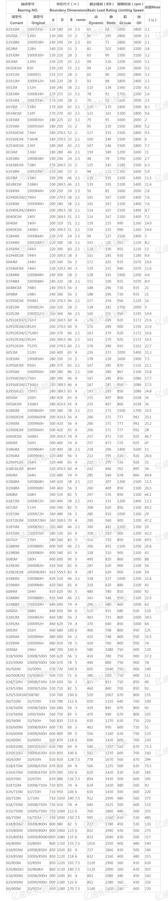 深溝球軸承是與軋機用四列圓柱滾子軸承配套的主要產品之一,主要用于軋輥軸向定位和導向。該類軸承為不可分離型軸承,結構簡單,使用方便,極限轉速高,該類產品單獨使用時主要用于承受徑向負荷,也可以承受一定的軸向負荷,當軸承徑向游隙加大時,具有角接觸球軸承的功能,可承受較大的軸向負荷。在轉速較高不宜采用推力球軸承的情況下可用該類軸承承受純軸向負荷。