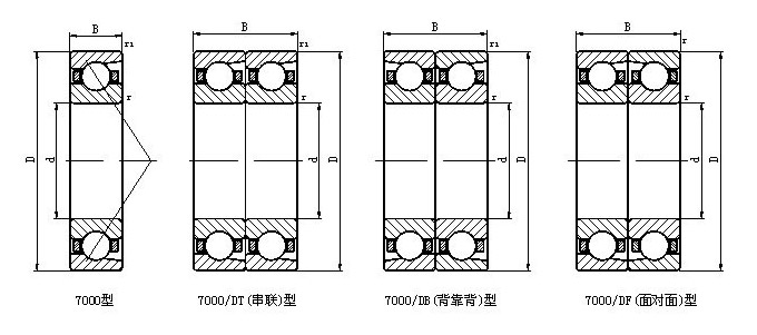 角接觸球軸承極限轉速較高,可同時承受徑向負荷和軸向負荷,有可承受純軸向負荷,其承受軸向負荷的能力有其接觸角決定,接觸角越大軸向負荷能力越大,通常不超過40°,屬于向心推力型角接觸球軸承。該類軸承在軋機軋輥軸向定位上應用廣泛。