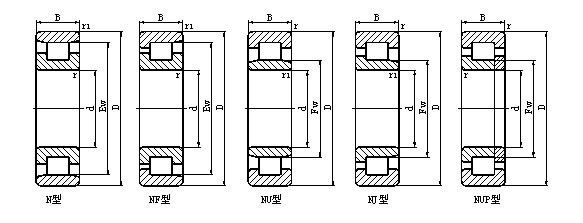 內外圈均帶擋邊是NF型、NJ型可承受較小的單向軸向負荷,NUP型可承受較小的雙軸向負荷。